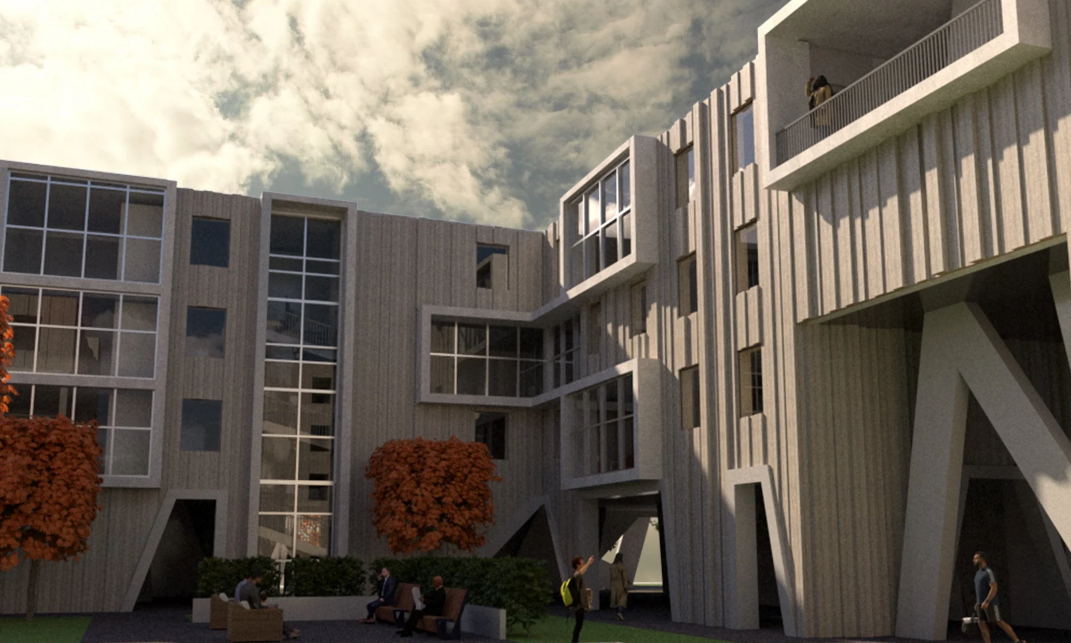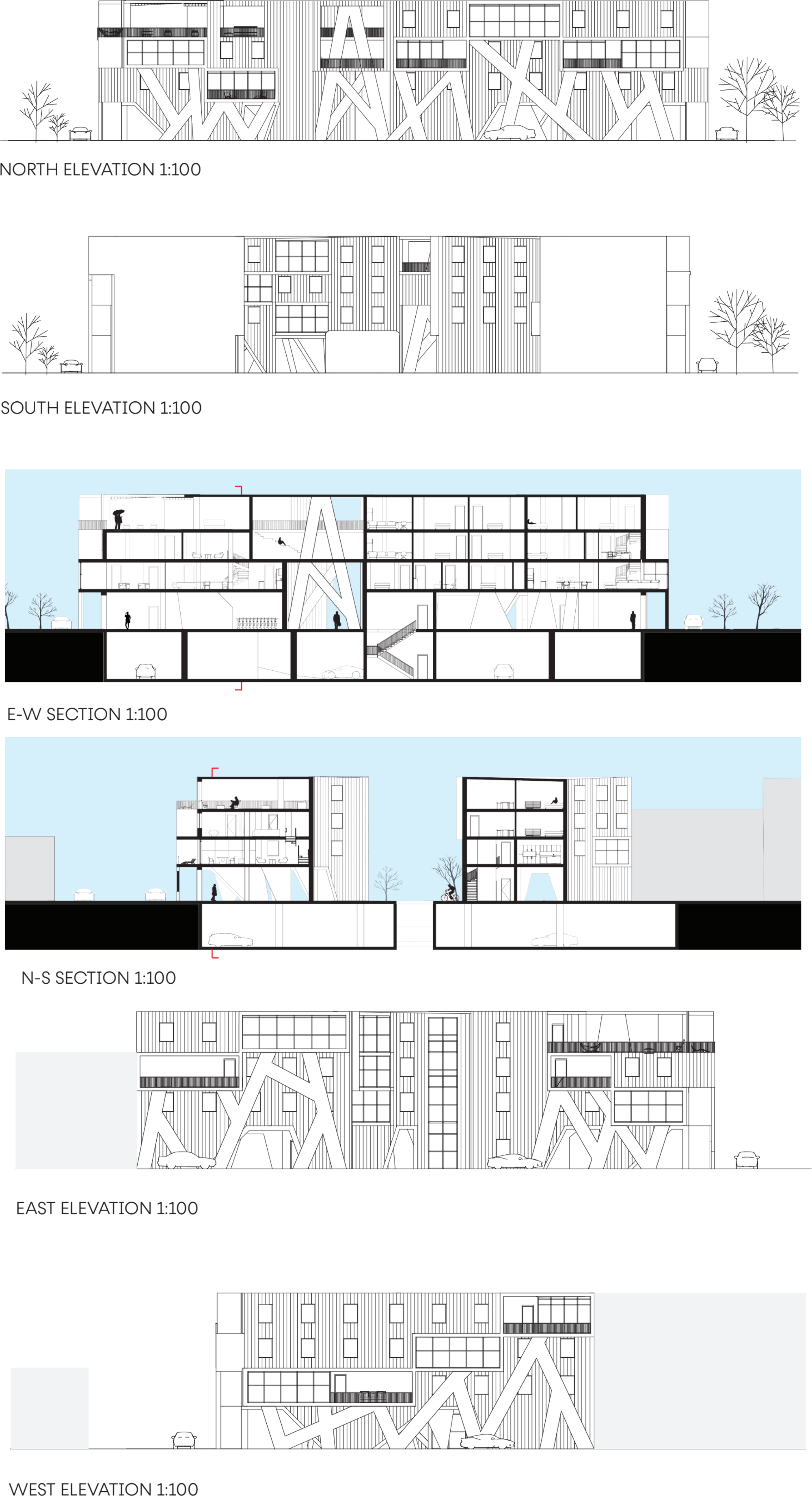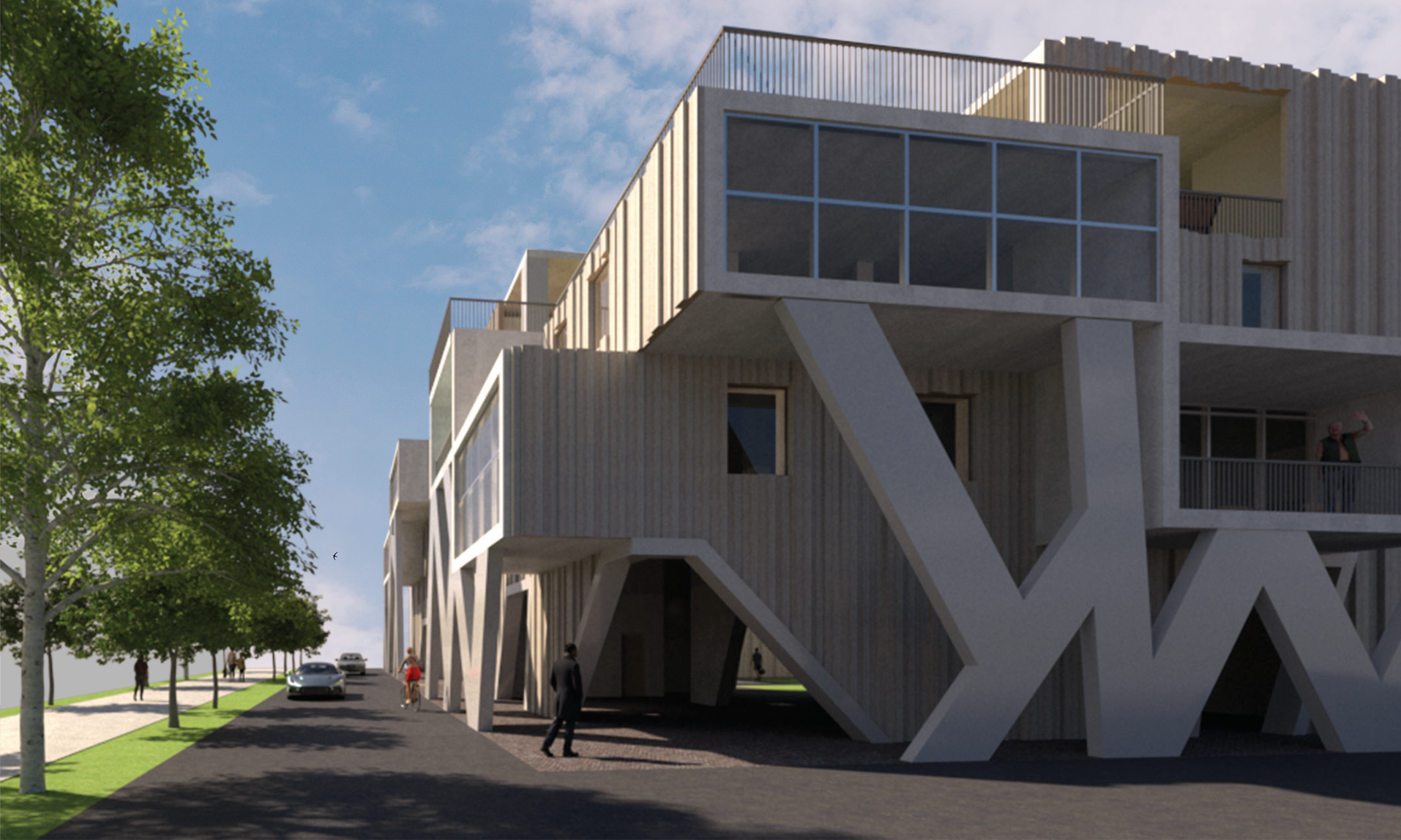 My proposal for Muidenbuurt M5C elevates the public space around the complex to invite community to the courtyard.