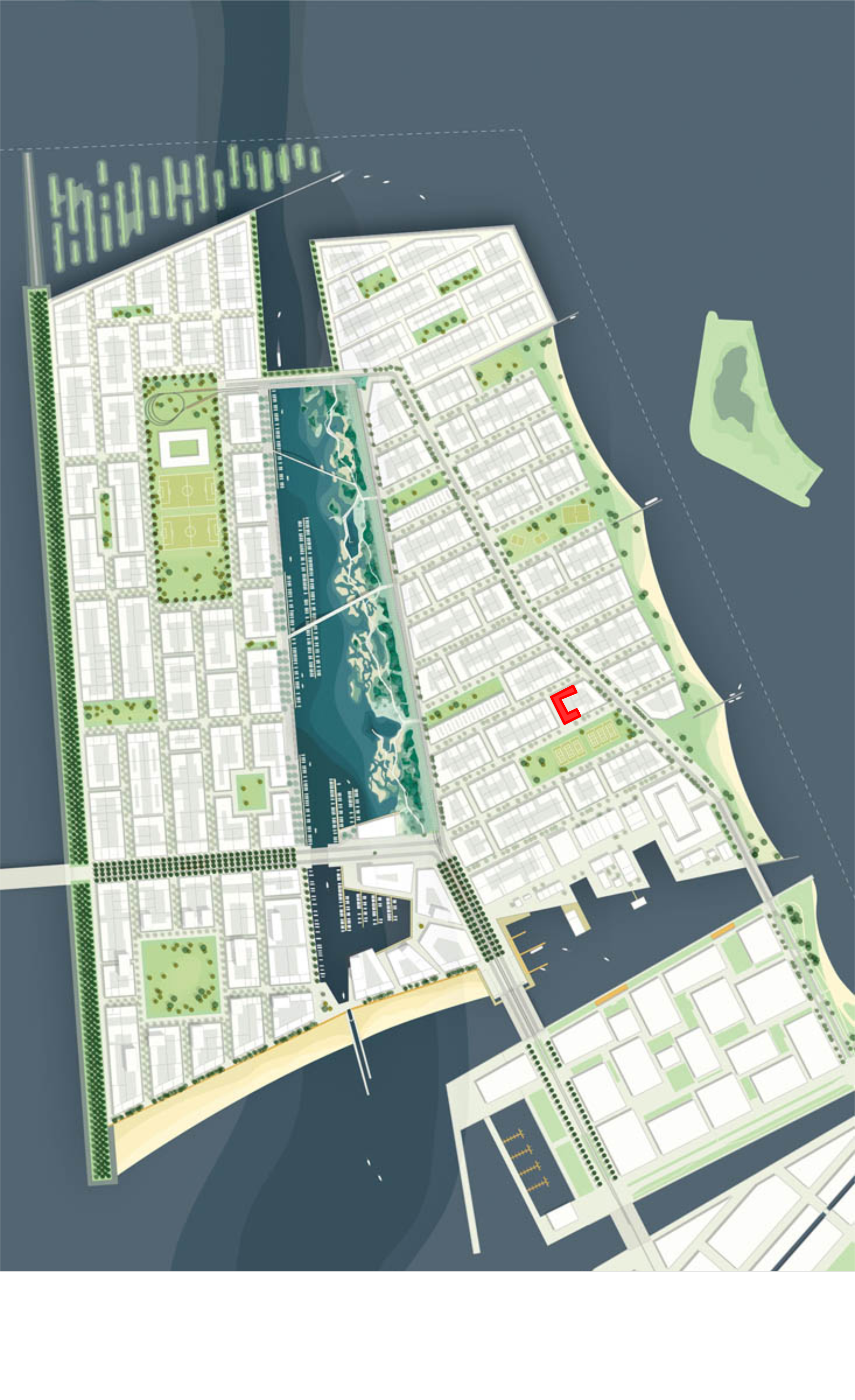 Located on the new island being constructed in Amsterdam, this project gives each tenant a unique living space while ensuring community interaction is possible.